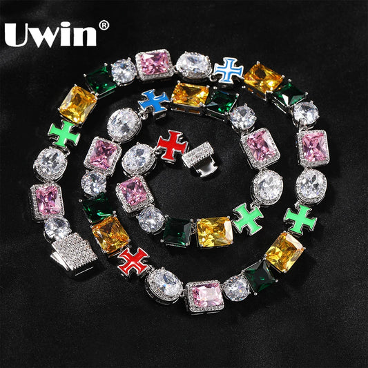 Iced Out Multi Gemstone Necklaces for Women Men Mixed Shape Colorful Gems Collection Necklace Fashion Hip Hop Jewelry